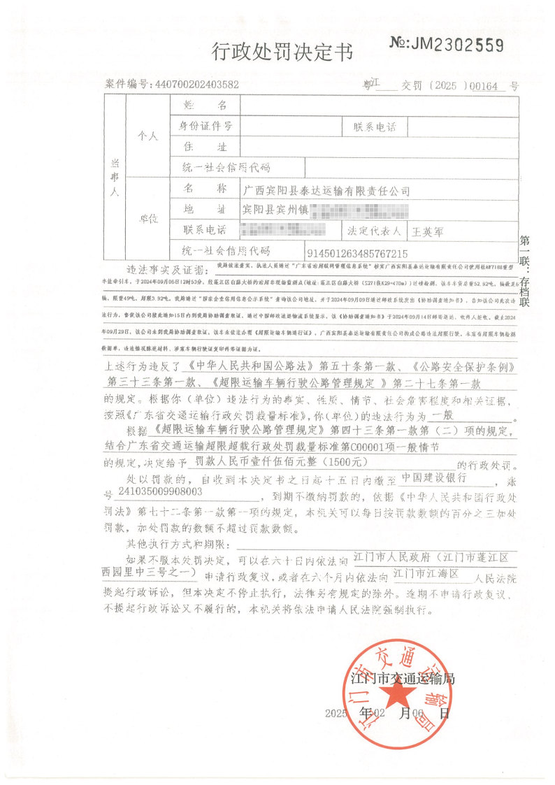你(单位)因违反交通运输行政管理法规,本机关已作出行政处罚决定和责令改正通知书(具体内容详见附件)。依照《中华人民共和国民事诉讼法》第九十五条的规定,因受送达人采用其他方式无法送达,现向你(单位)公告送达《行政处罚决定书》和《责令改正通知书》。自公告之日起,经过30日即视为送达。