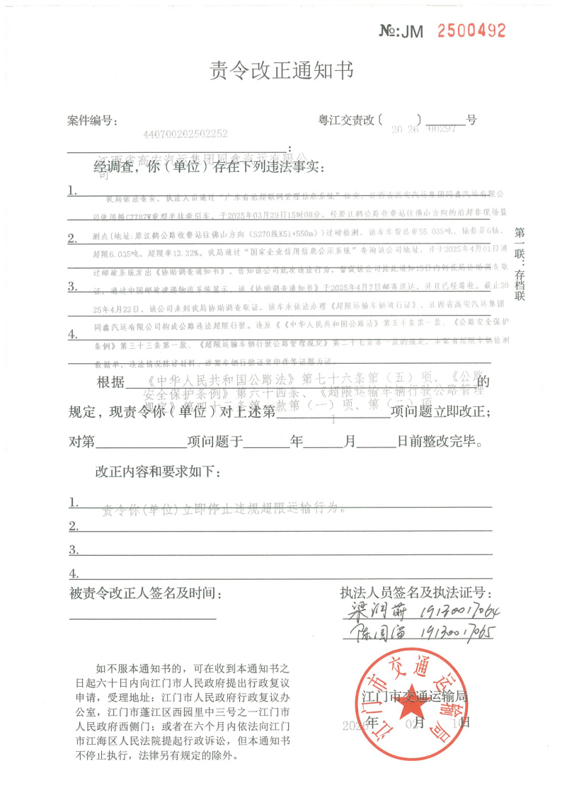 你(单位)因违反交通运输行政管理法规,本机关已作出行政处罚决定和责令改正通知书(详见附件)。依照《中华人民共和国民事诉讼法》第九十五条的规定,因无法以其他方式向你(单位)送达,现向你(单位)公告送达《行政处罚决定书》和《责令改正通知书》。自发出公告之日起,经过30日即视为送达。