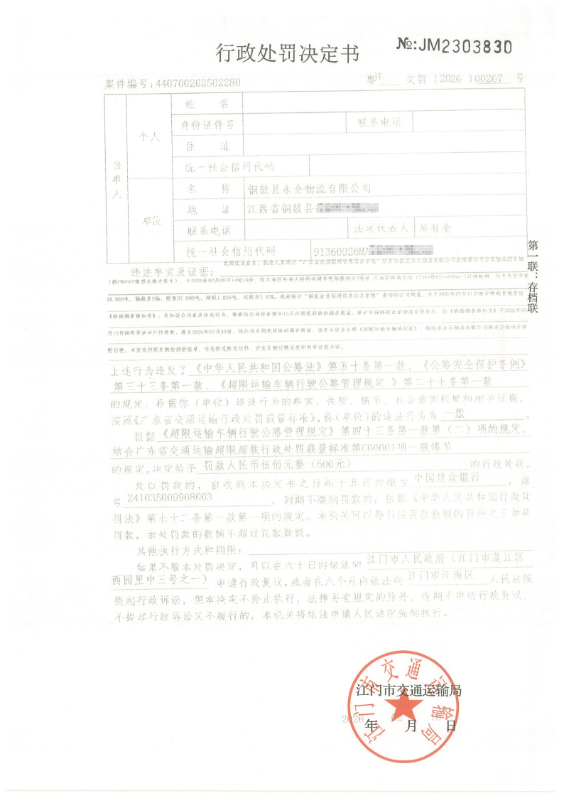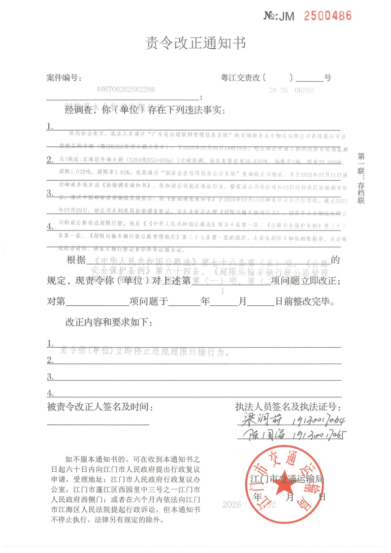 你(单位)因违反交通运输行政管理法规,本机关已作出行政处罚决定和责令改正通知书(详见附件)。依照《中华人民共和国民事诉讼法》第九十五条的规定,因无法以其他方式向你(单位)送达,现向你(单位)公告送达《行政处罚决定书》和《责令改正通知书》。自发出公告之日起,经过30日即视为送达。