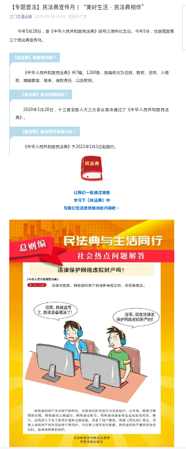 充分利用局网站、微信公众号等平台,开展“美好生活·民法典相伴”——民法典宣传月专题普法宣传,以漫画形式,就民法典总则编及社会热点相关的法律条文进行普法宣传。