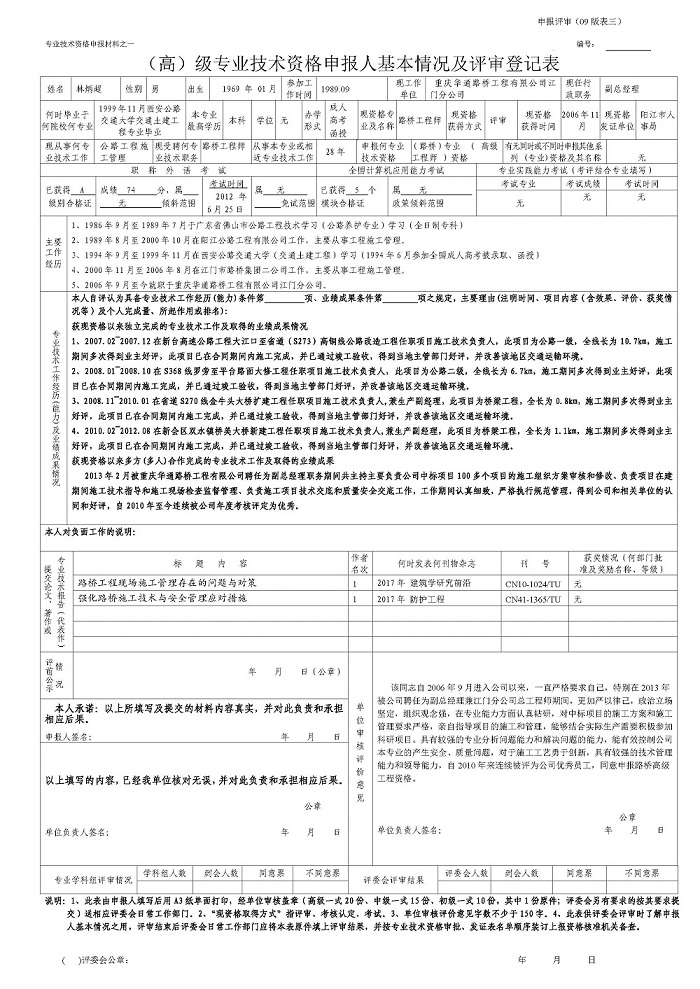 根据《广东省交通运输厅关于做好2017年度路桥港航船舶 工程高级专业技术资格评审材料报送工作的通知》(粤交人函〔2017〕1667号)要求,现将高级专业技术资格申报人林炳超专业技术资格申报情况予以公示。公示期间,如对相关资格资料有任何异议,可通过来信、来电、来访等形式向我局反映。公示时间:2017年9月7日至2017年9月15日。