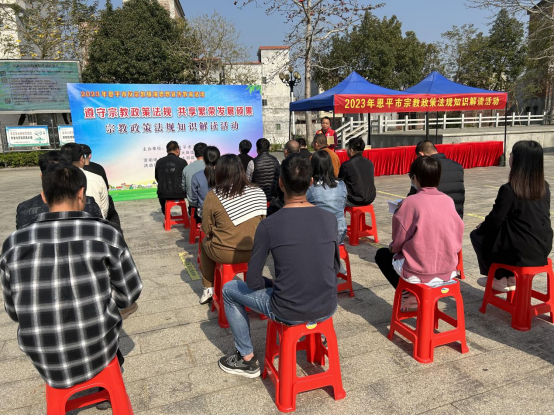 为深入贯彻落实习近平总书记关于宗教工作的重要论述精神,推动恩平市宗教工作高质量发展,近日,恩平市委统战部(市民族宗教局)联合大田镇人民政府在大田镇文化广场开展以“遵守宗教政策法规,共享繁荣发展硕果”为主题的反宗教极端思想宣传教育活动。