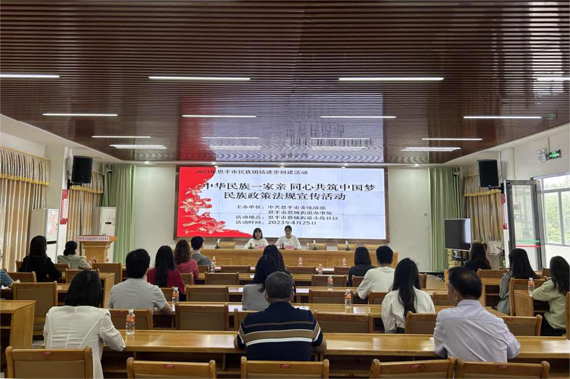 为进一步深化民族团结进步宣传教育,近日,恩平市委统战部(市民族宗教局)会同恩平市恩城街道办在恩城街道小岛社区开展民族团结进步创建“中华民族一家亲 同心共筑中国梦”主题宣传活动。恩平市委统战部(市民族宗教局)、恩城街道办及小岛社区干部职工参加了活动。