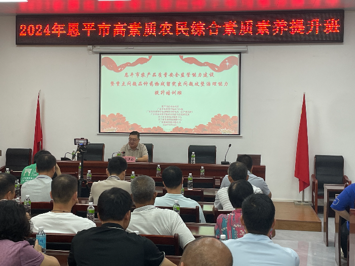 9月12日,为提高恩平市基层农产品质量安全监管能力,提升水产品重点品种药物残留突出问题攻坚治理能力,恩平市农产品质量安全监管能力建设暨重点问题品种药物残留突出问题攻坚治理能力提升培训班在恩城街道办米仓村委会、沙湖镇东岸村委会顺利开班。本次培训班邀请了省农科院研究员彭凯同志及南海水产研究所研究员刘广锋同志前来授课,主要就乌鳢、大口黑鲈等水产重点监管品种绿色养殖技术进行了指导,帮助一线农业生产主体及时更新技术储备,规范用药,提高农民综合素质素养。