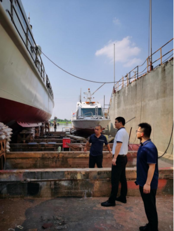 5月14日,市海洋综合执法支队副支队长钟树年带队到佛山市南海珠峰造船有限公司,现场监督检查“中国渔政44201”船年度维修情况。