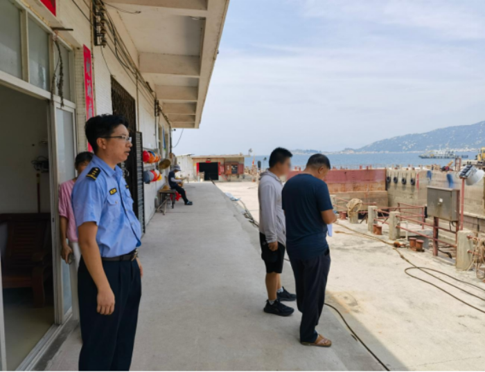 8月22日,市海洋综合执法支队组织台山大队对台山市赤溪某工程用海情况进行检查,并向企业负责人解读有关用海政策。