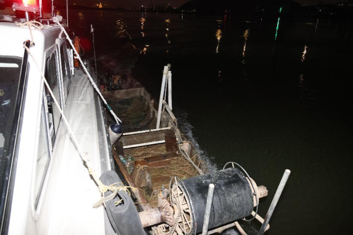 12月16日,市海洋综合执法支队开展西江执法巡查,在潮连与荷塘之间水域查获放笼作业的涉渔“三无”船舶1艘,执法人员依法将该船舶暂扣并待进一步处理。
