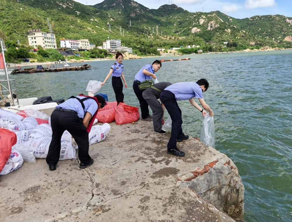 6月19日,市海洋综合执法支队针对一起非法电鱼捕捞案件,与涉案人员在台山市广海湾鱼塘港开展生态损害修复活动,现场共放生黑鲷、三线等鱼苗约6万尾,价值约11.8万元。