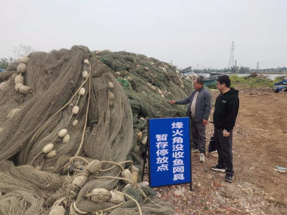12月16日,市海洋综合执法支队渔业执法科(机动大队)到台山市某保管场对前期清理打捞的违规渔网具开展核验工作,下一步将对该批违规渔网具进行依法销毁。