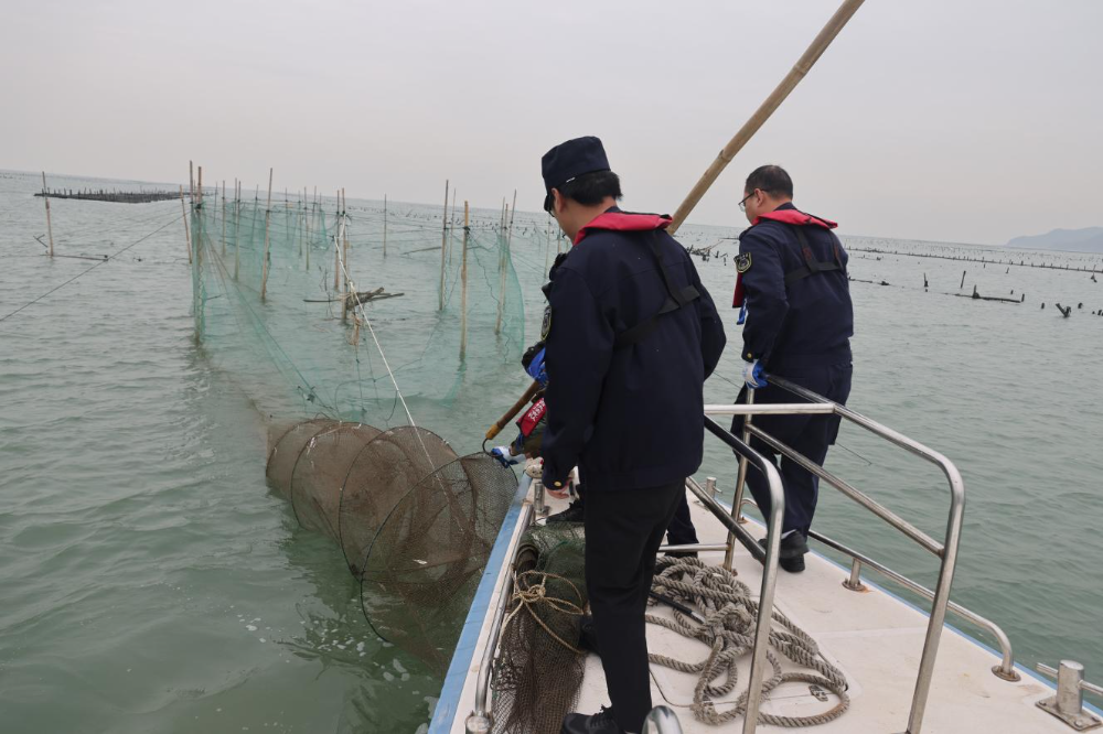 12月16日,市海洋综合执法支队渔业执法科(机动大队)在大襟岛至黄茅海大桥海域开展巡航执法行动,检查涉渔船舶14艘,清理违规网具4处,约100米。