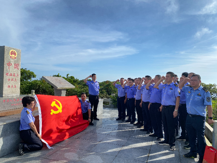 在建党103周年即将到来之际,江门支队联合省总队直属二支队组织开展“礼赞党旗红 逐梦海洋蓝”的“七一”主题党日活动。12日下午,在上川围夹岛领海基点石碑前,全体党员重温入党誓词,用铮铮誓言诠释对党绝对忠诚的信念和为海洋强国事业不懈奋斗的坚定决心。13日上午,全体党员来到上川岛广东省海上民兵训练基地参观学习,交流研讨新时期我省海上民兵训练备勤工作。