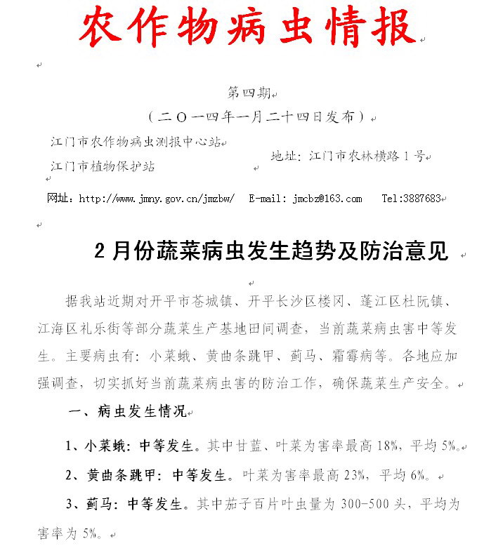 2月份蔬菜病虫发生趋势及防治意见 (农作物病虫情报第四期)