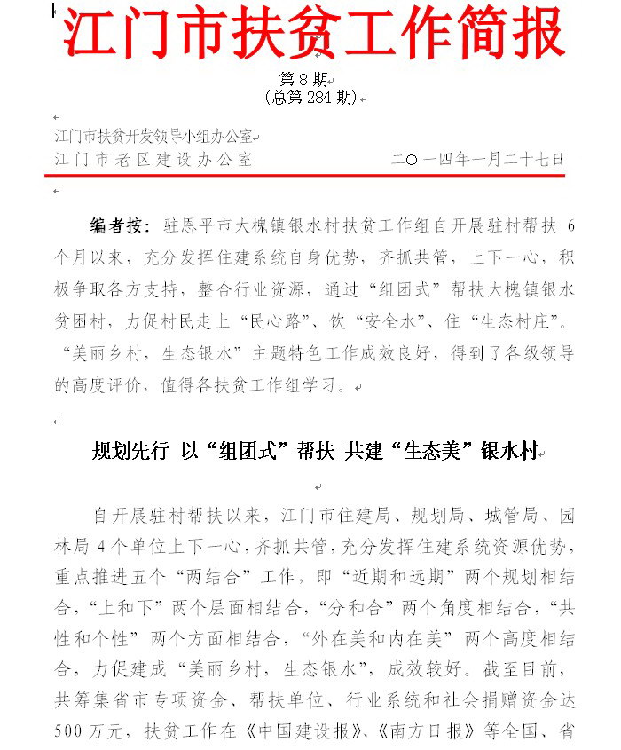 2014年开云电竞官方网站扶贫工作简报第8期(总第284期)