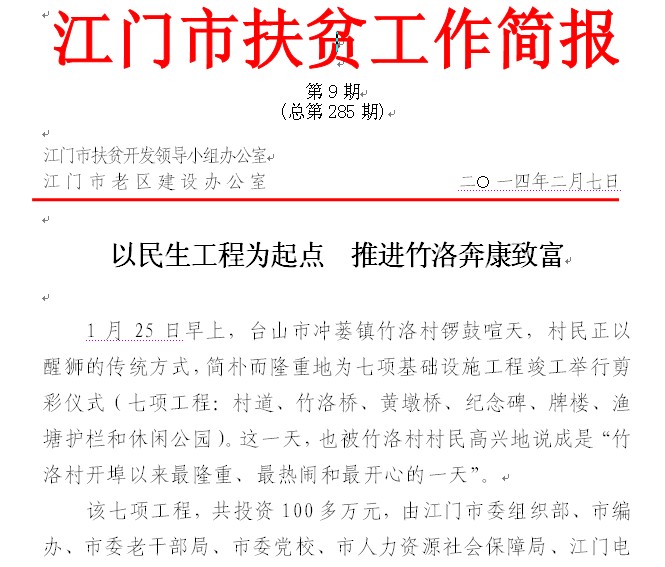 2014年开云电竞官方网站扶贫工作简报第9期(总第285期)