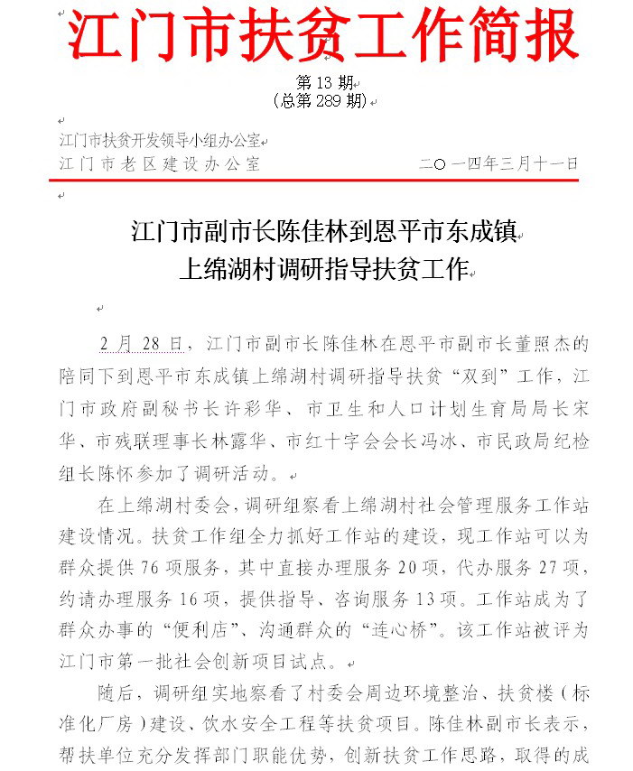 2014年开云电竞官方网站扶贫工作简报第13期(总第289期)