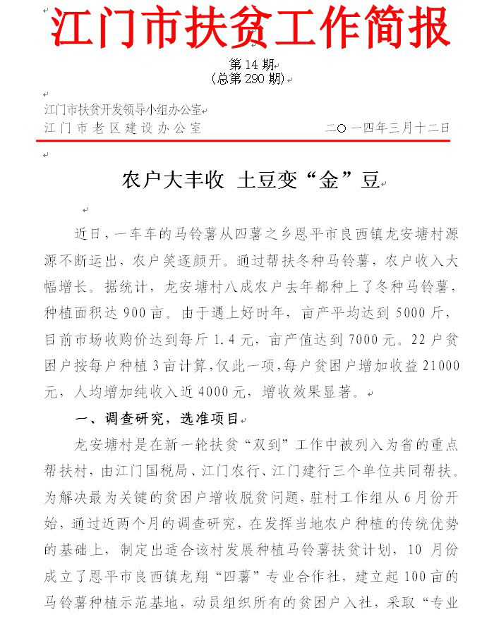2014年开云电竞官方网站扶贫工作简报第14期(总第290期)