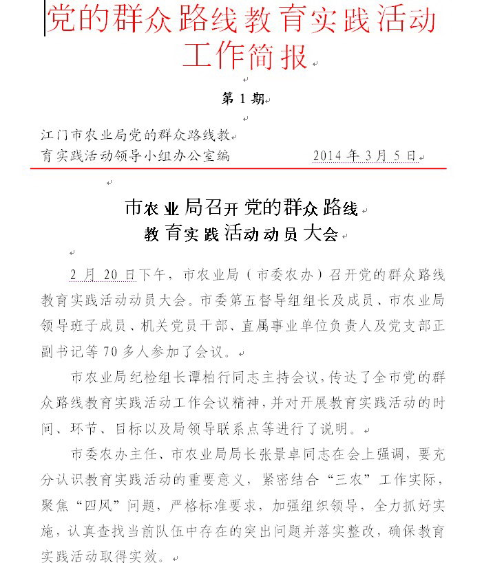 党的群众路线教育实践活动工作简报(第1期)