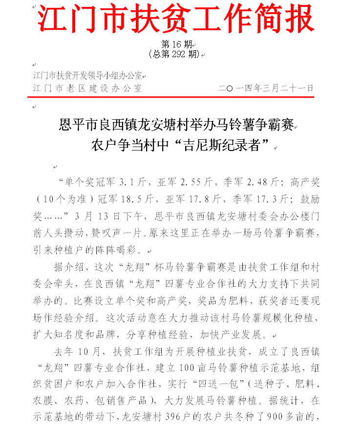 2014年开云电竞官方网站扶贫工作简报第16期(总第292期)