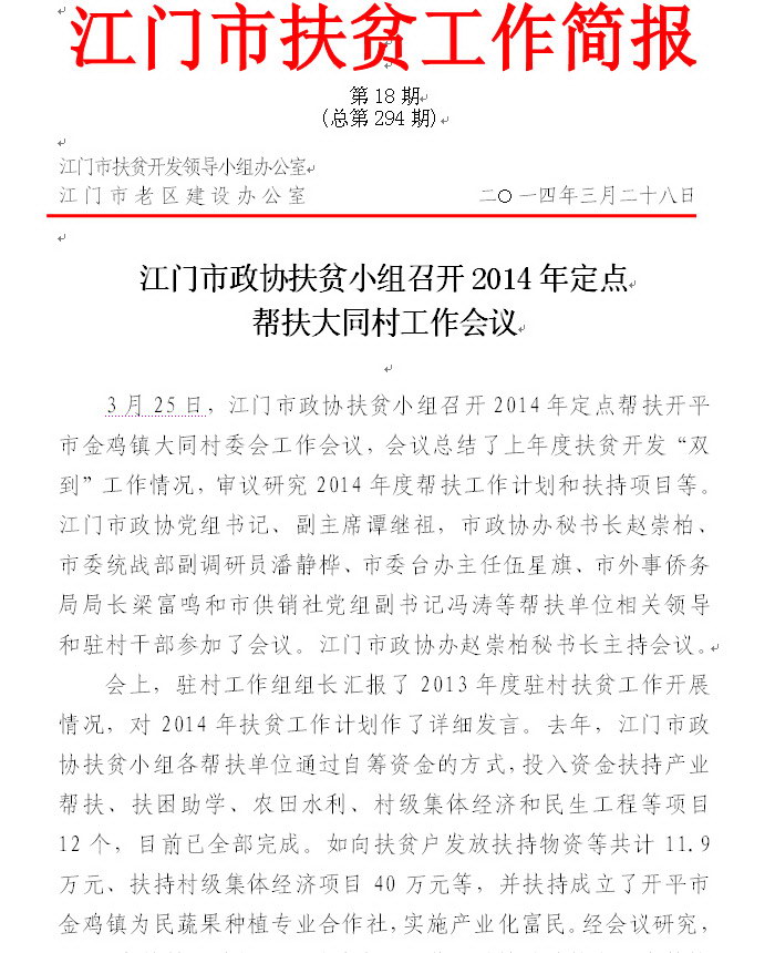 2014年开云电竞官方网站扶贫工作简报第18期(总第294期)