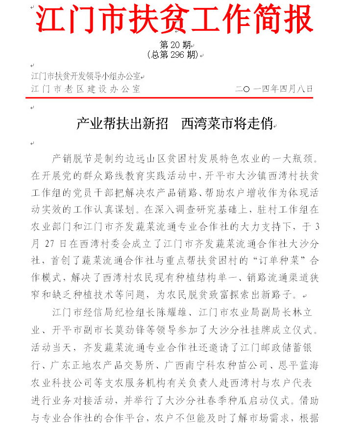 2014年开云电竞官方网站扶贫工作简报第20期(总第296期)