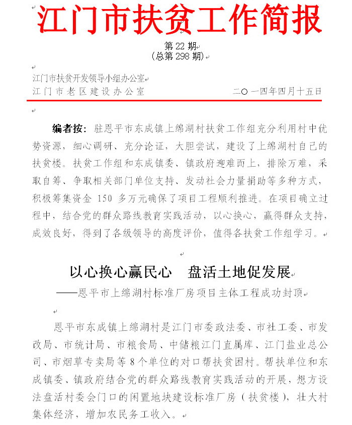 2014年开云电竞官方网站扶贫工作简报第22期(总第298期)