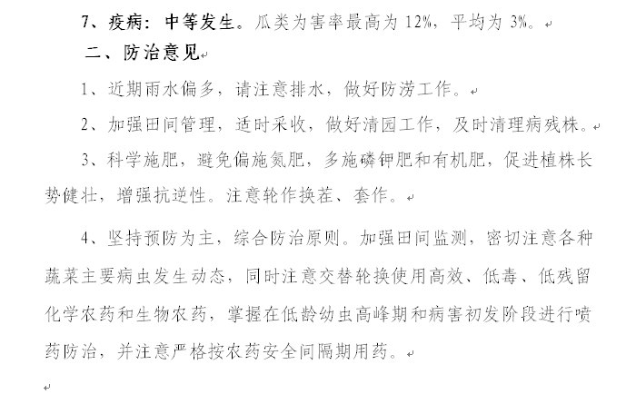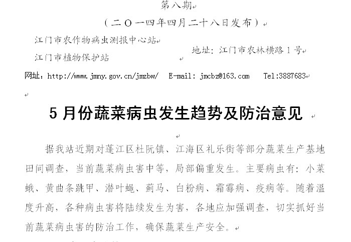 5月份蔬菜病虫发生趋势及防治意见(农作物病虫情报第八期)