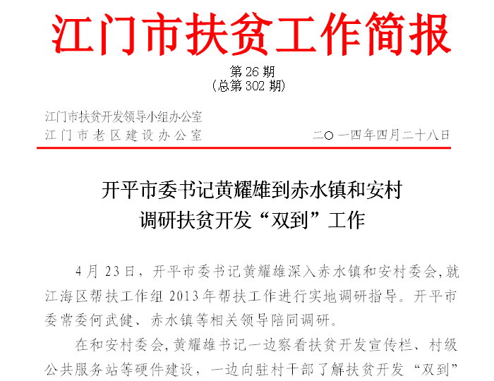 2014年开云电竞官方网站扶贫工作简报第26期(总第302期)