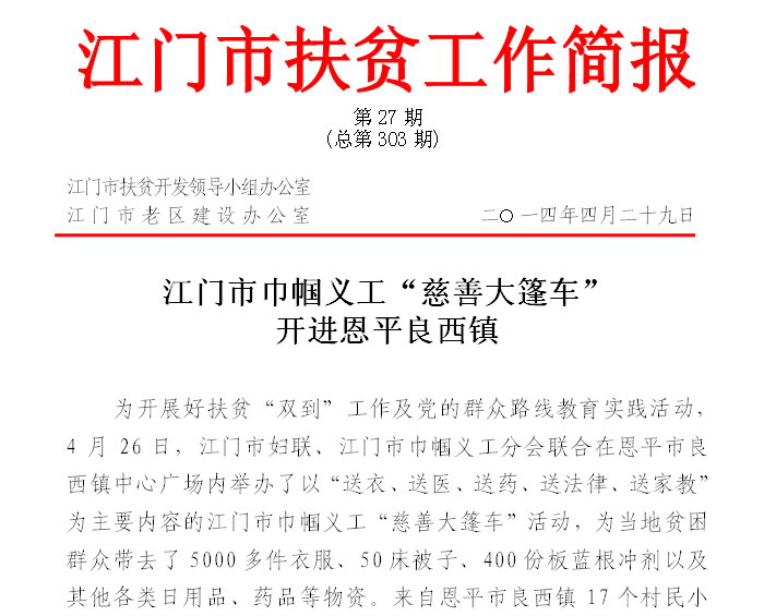 2014年开云电竞官方网站扶贫工作简报第27期(总第303期)