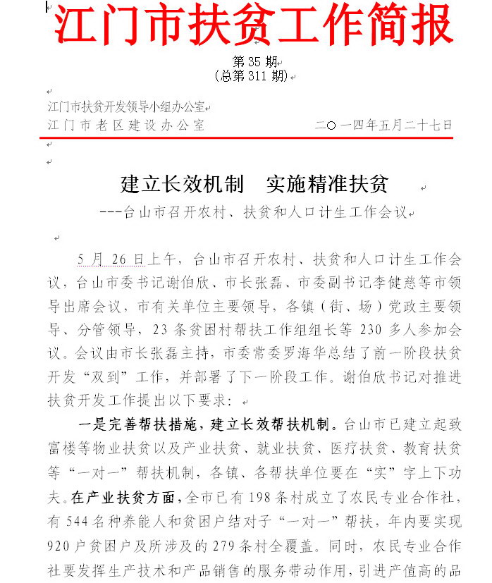 2014年开云电竞官方网站扶贫工作简报第35期(总第311期)