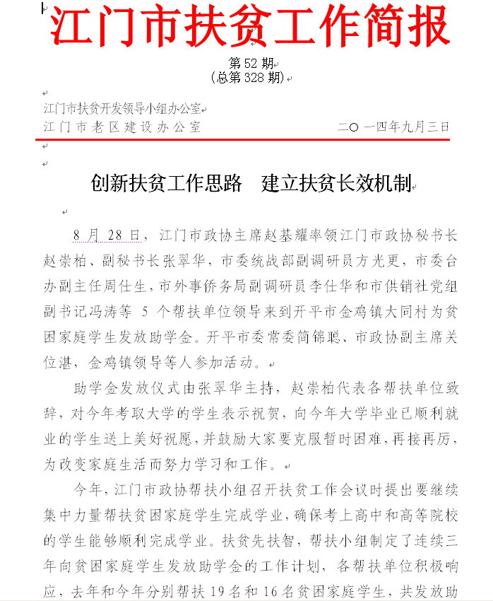 2014年开云电竞官方网站扶贫工作简报第52期(总第328期)