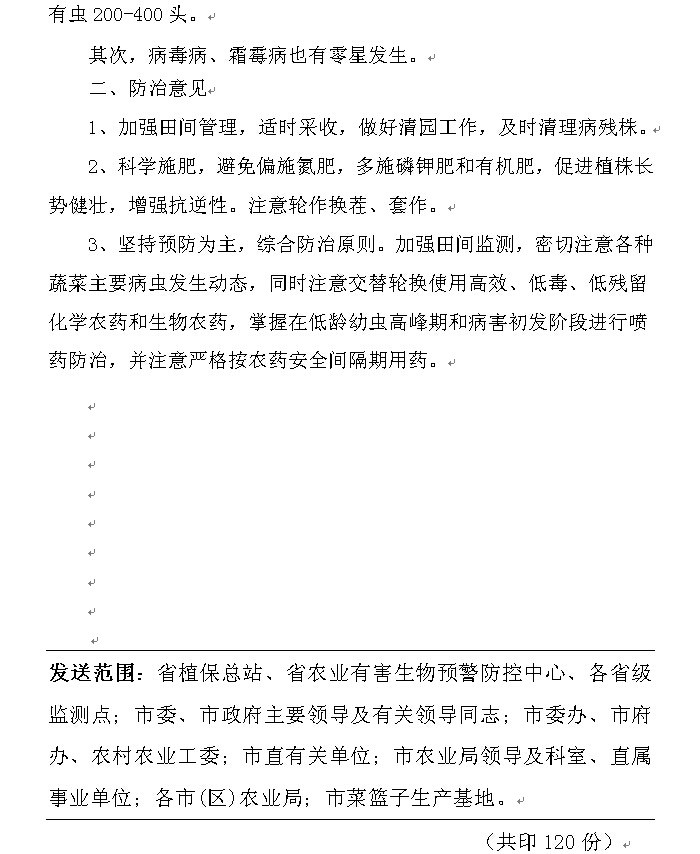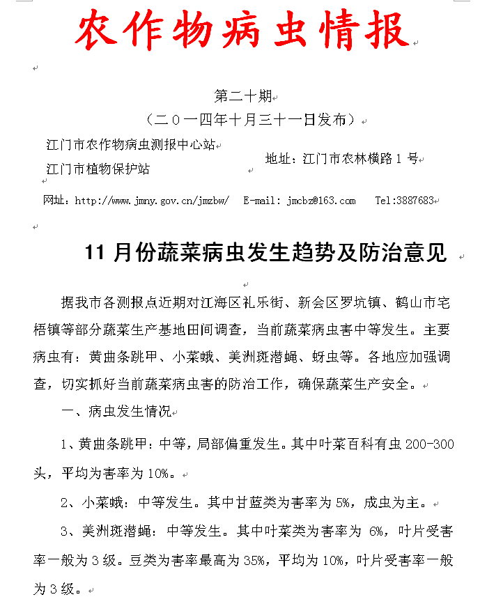 2014年农作物病虫情报第二十期(11月份蔬菜病虫发生趋势及防治意见)