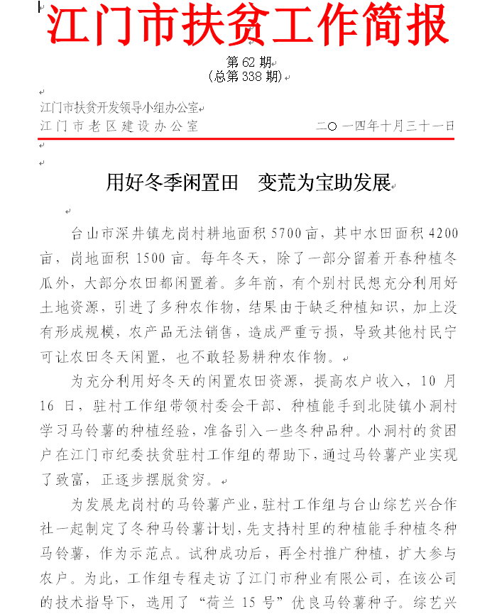 2014年开云电竞官方网站扶贫工作简报第62期(总第338期)
