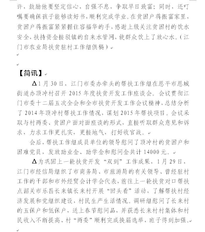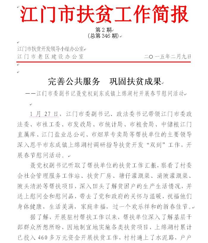 2015年开云电竞官方网站扶贫工作简报第2期(总第346期)