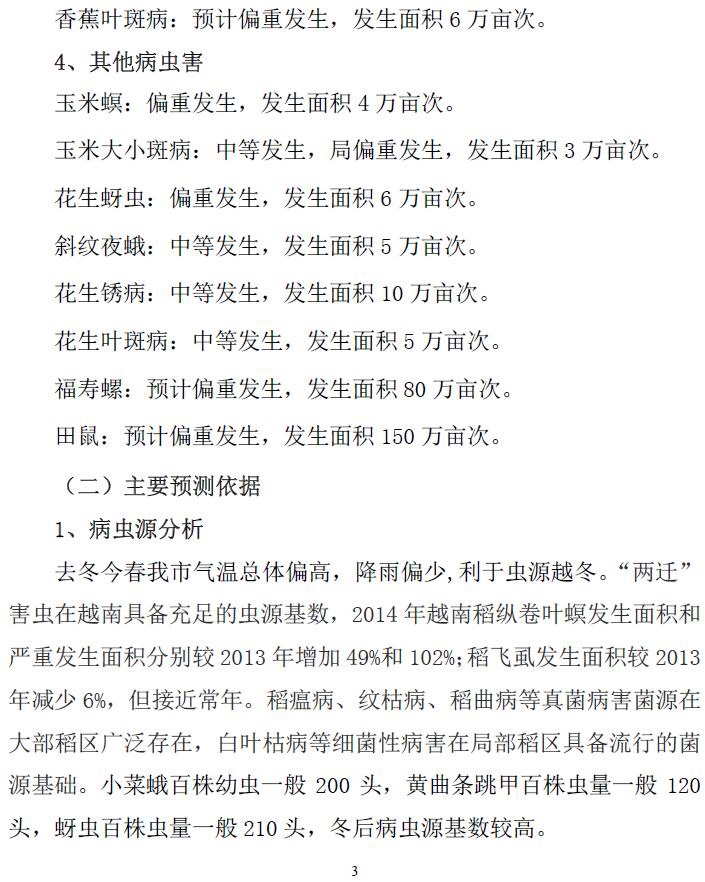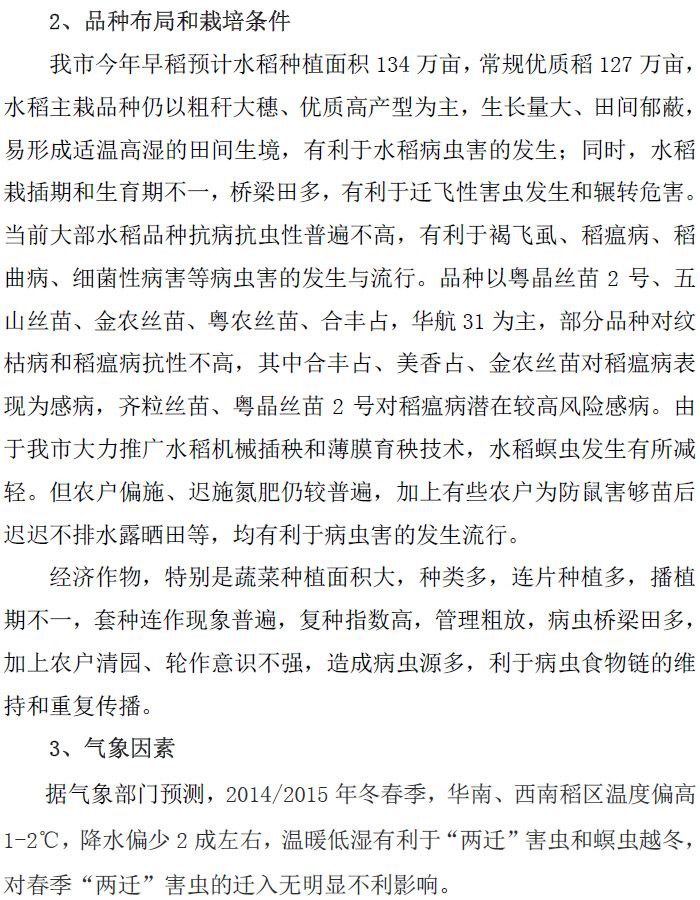 (2015 年上半年农作物病虫发生趋势预测)