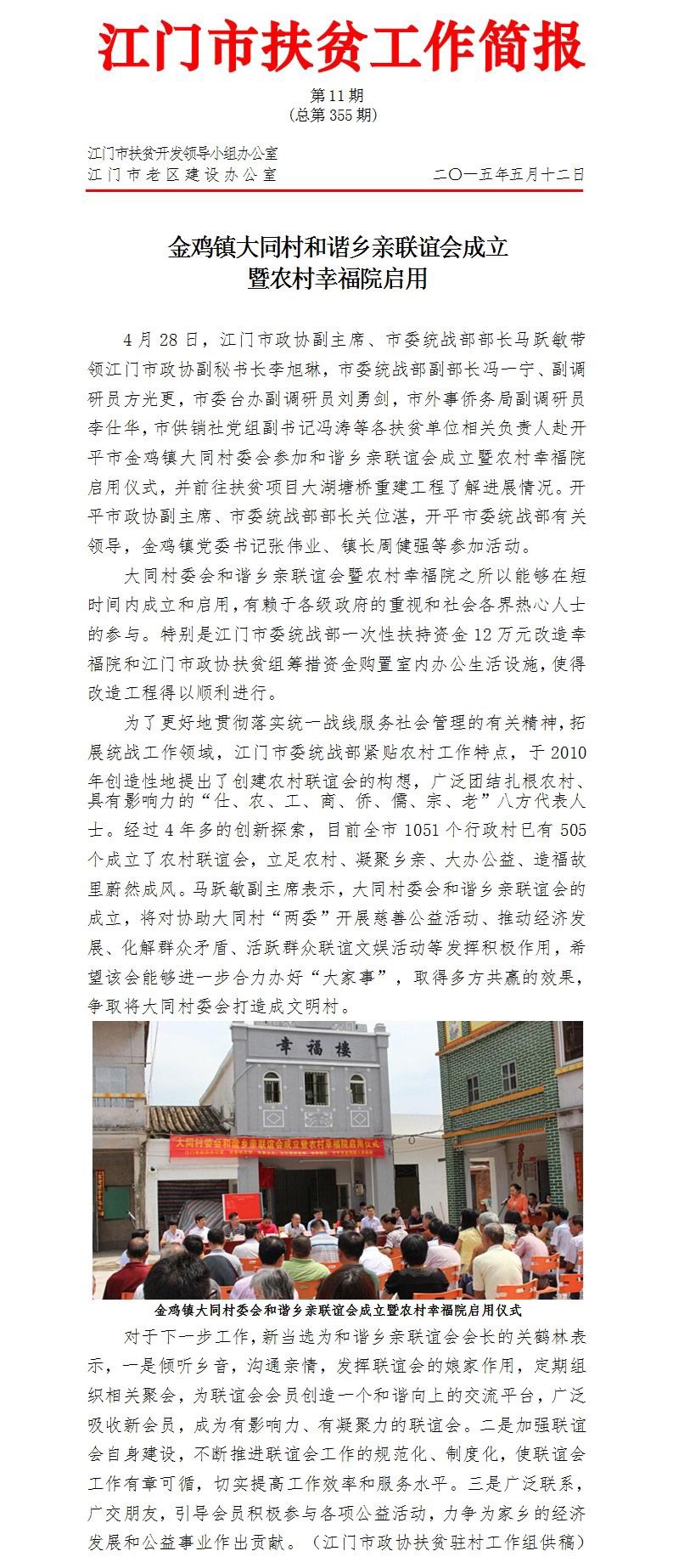 2015年开云电竞官方网站扶贫工作简报第11期(总第355期)