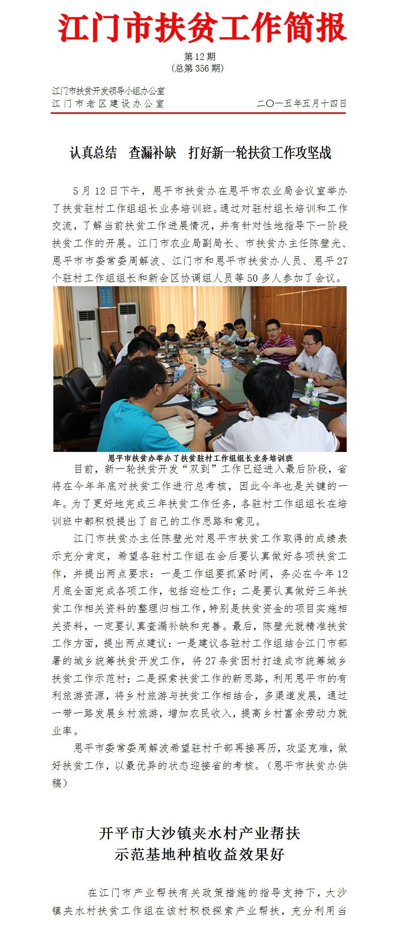 2015年开云电竞官方网站扶贫工作简报第12期(总第356期)