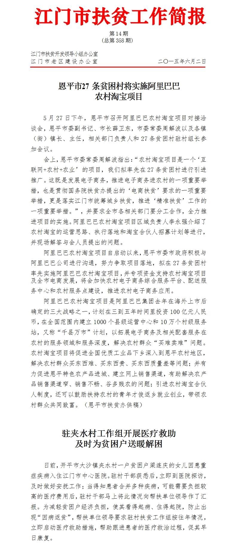 2015年开云电竞官方网站扶贫工作简报第14期(总第358期)