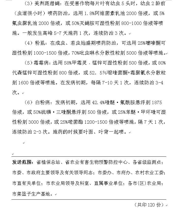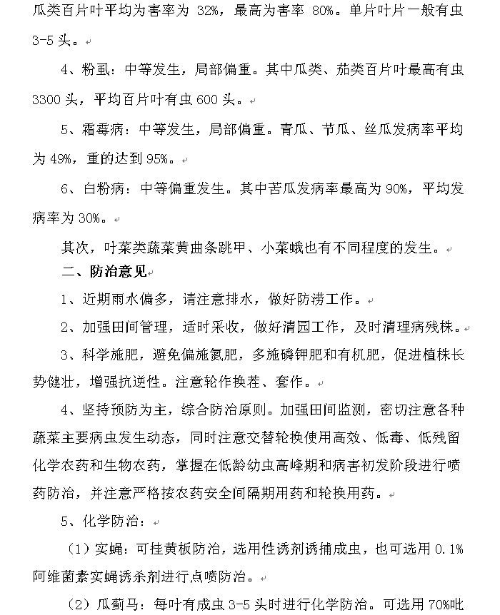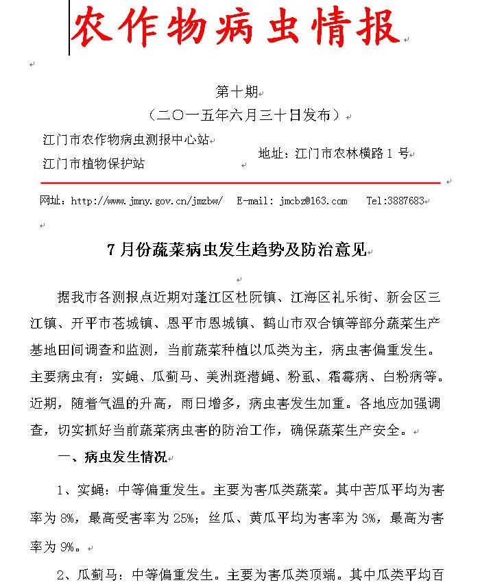 2015年农作物病虫情报第十期(7月份蔬菜病虫发生趋势及防治意见)