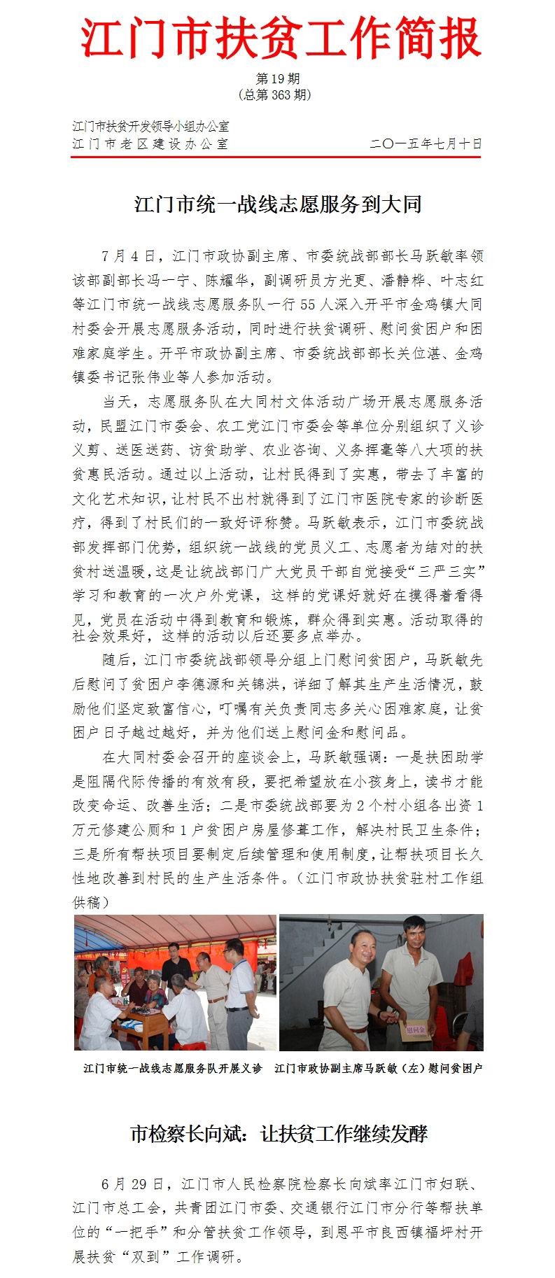 2015年开云电竞官方网站扶贫工作简报第19期(总第363期)