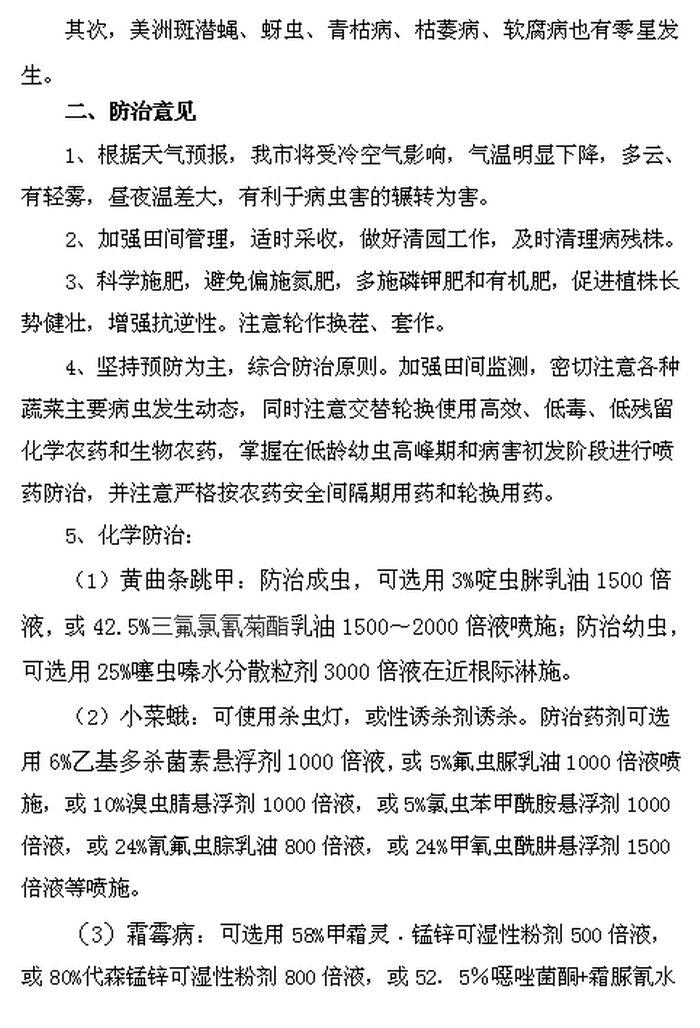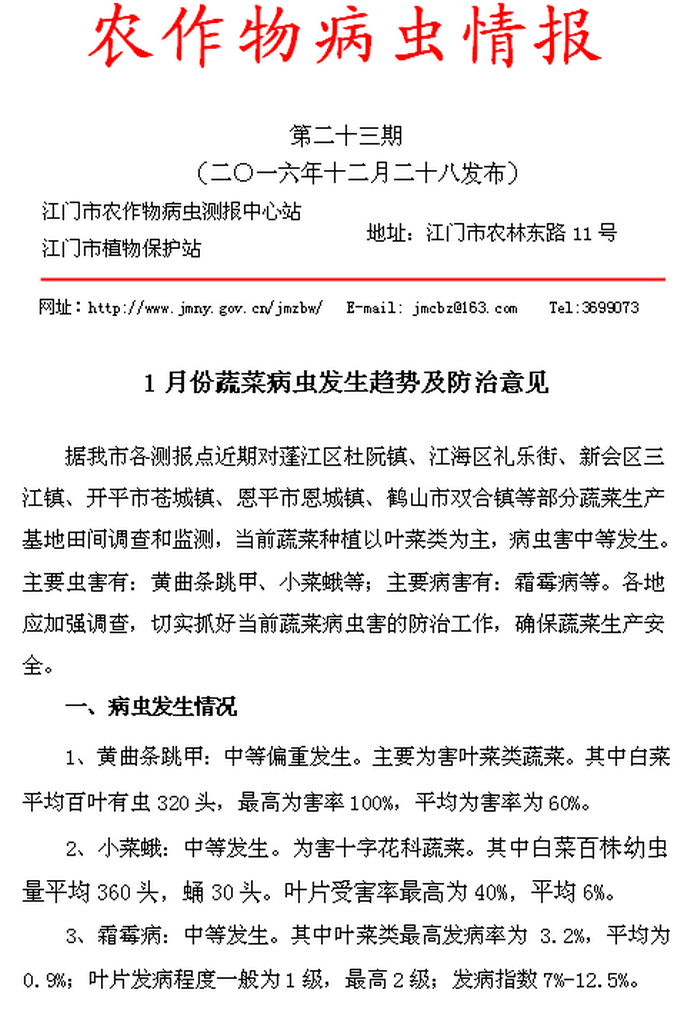 (1月份蔬菜病虫发生趋势及防治意见)