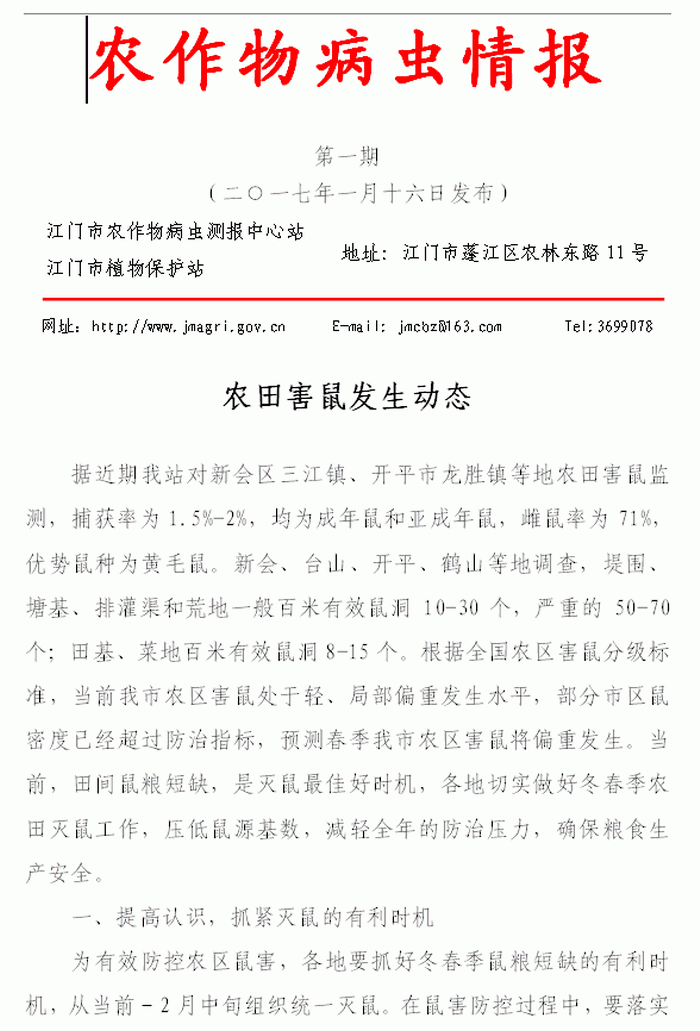 2017年农作物病虫情报 第一期