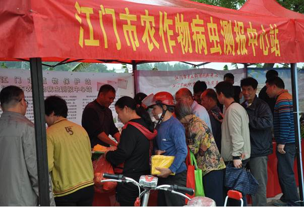 3月22日,开云电竞官方网站农业科技下乡活动在开平市苍城镇举行,开云电竞官方网站农作物病虫测报中心站积极组织技术人员参加这次活动。在活动现场,技术人员开展植保技术咨询服务,为农民群众解答农作物病虫害防治、农药安全使用和农药减量控害等问题。活动期间,为农民群众免费发放了《农药安全使用手册》、《农药减量控害技术》、《水稻病毒病防治技术》、《红火蚁的危害与防控》和《柑桔黄龙病菌的危害与防控》等宣传资料600多份。这次活动受到了广大农民群众的欢迎和好评,收到了良好的效果。