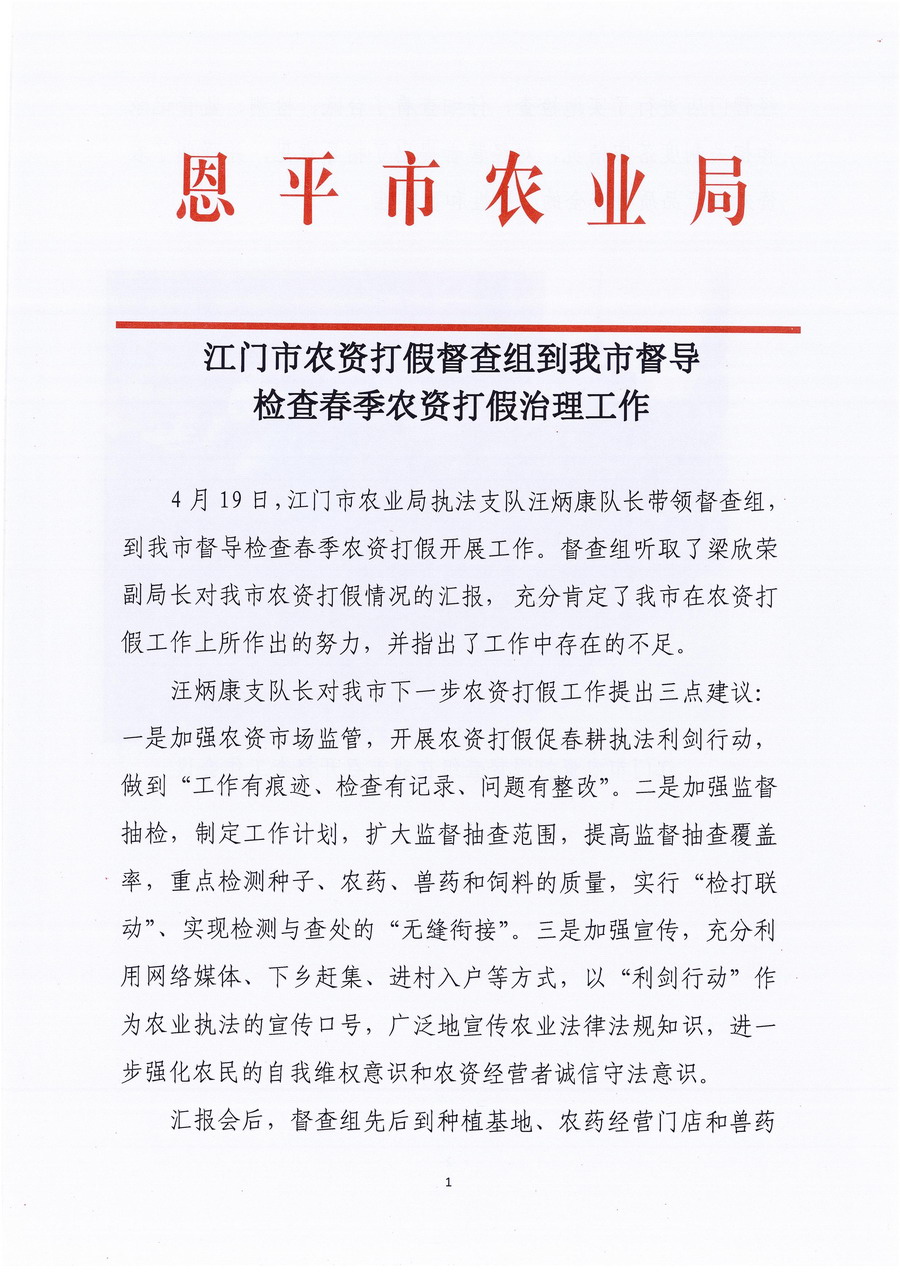 开云电竞官方网站农资打假督查组到我市督导检查春季农资打假治理工作