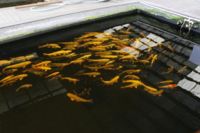3.锦鲤类型三:优选自产锦鲤,平均体重约2公斤,体长45cm,约250尾(锦鲤在5号池塘饲养,投喂可观察)。