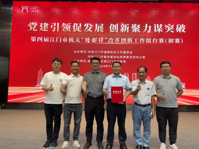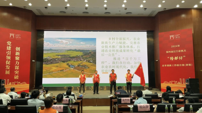 本届“侨都杯”改革创新工作擂台赛由市直机关工委、市委改革办举办,分为发展提质、服务增效、党建赋能三个类别。在擂台赛现场,市农业技术服务中心参赛队员充分发挥团队精神,通过PPT+视频播放、演讲解说、情景剧等形式,演绎了江门农业科技推广服务单位联动各级科研机构、农业科技推广服务单位和社会资源力量,不断完善农业技术推广服务体系,打通科技成果向农业新质生产力转化“最后一公里”的创新做法和工作成效,获得现场观众连连点赞和评委一致肯定,最终以第六名闯入市决赛。