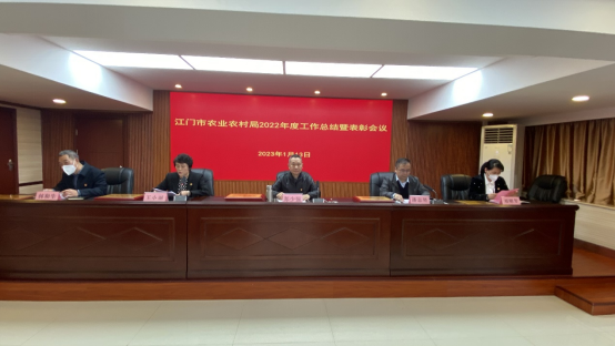 郑少强指出,市农业农村局将继续以习近平新时代中国特色社会主义思想为指导,深入贯彻落实党的二十大精神和中央农村工作会议精神,坚持党建引领,积极融入建设农业强国大局,以实施乡村振兴战略为总抓手,围绕“两条底线、一个中心、五个抓手”,统筹抓好“三农”各项工作任务。一是守住保障粮食安全底线。落实最严格的耕地保护制度,坚持藏粮于地、藏粮于技战略,打造水稻生产全过程社会化服务的示范试点,基本消灭可复耕复种的撂荒地,推进“上山下海”。二是守住不发生规模性返贫底线。持续加大对371户1214人防止返贫监测对象跟踪帮扶力度,巩固提升“三保障”水平和饮水安全。持续深化蓬江、江海与恩平,新会与台山,鹤山与开平结对协同发展,在现代农业领域产业园区共建、产业联动发展等方面开展高效合作。三是把握农业强市工作。推进畜牧生产、淡水养殖提质,鼓励畜牧上楼养殖,提高高价值淡水养殖品种占比。重点发展陈皮、大米等六大特色优势产业。加快建设广东(江门)智慧农机装备产业园,大力发展设施农业。建设江门国家骨干冷链物流基地,建好国家级广东丝苗米优势特色产业集群及14个省级以上现代农业产业园,力争新增1家国家级农业龙头企业。四是建设宜居宜业和美乡村。实施宜居宜业和美乡村建设行动,巩固农村道路、饮水、电网、通信、污水等基础设施建设,加快提升农村基础设施水平。发挥“市直单位+企业”挂钩帮扶村机制作用,加快推动赤坎古镇周边35条自然村人居环境整治工作,高标准打造7条乡村振兴示范带。五是深化农村综合改革。加快推进台山省级“农业特区”试点,创建台山广东省农村改革试验区、开平广东省农村综合改革试点,统筹公共型农业社会化服务体系改革省级试点、村改居社区综合配套改革等,探索建立农业农村高质高效发展体制机制。