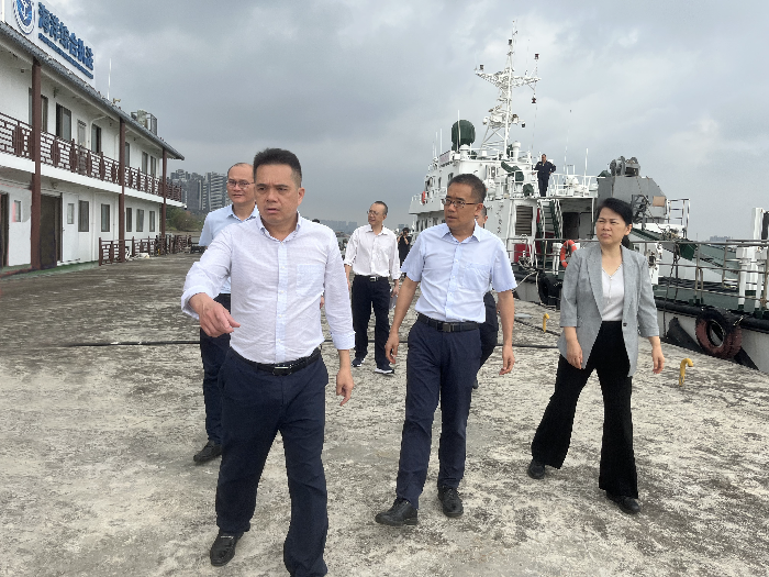 2月22日上午,市政府副市长曹阳一行到市海洋综合执法支队(下称江门支队)调研,听取过去一年工作情况,指导开展2024年工作。市政府副秘书长莫劲锋,江门支队党组书记、政委邓明芳,支队长汪炳康,以及市农业农村局、市自然资源局、市生态环境局有关负责同志参加调研。
