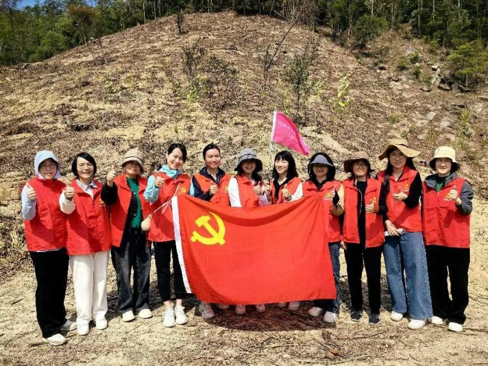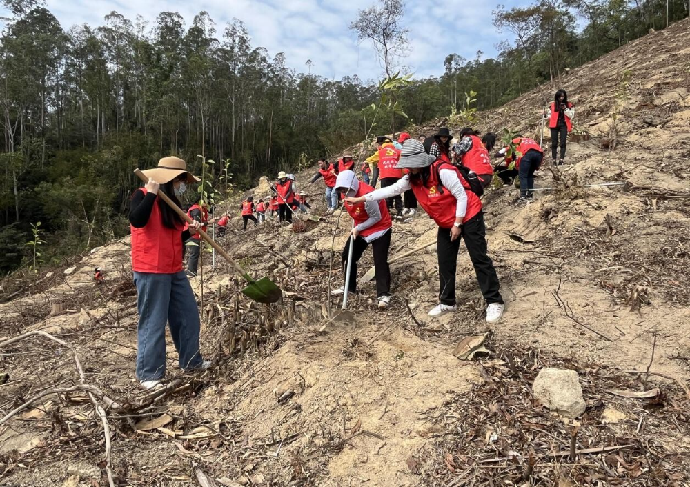 岭南春来早,植绿正当时。3月21日上午,市直机关妇工委联合市农业农村局妇委会开展“我为侨乡添新绿”巾帼植树活动,市农业农村局12名妇女代表参加。参与植树活动的妇女代表们精神饱满、干劲十足,扶树促定根、挥锹巧填土、浇水保定植……经过大家分工协作、通力配合,一棵棵寄托希望的嫩绿小苗在山坡上顺利安家,在和风中吐露融融春意。