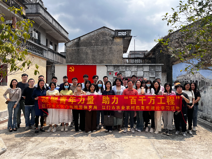 全体人员首先来到百合镇茅冈村委会宝顶村,开展了青年理论学习座谈会,两单位青年干部结合自身经历和工作实践,畅谈了加强理论和实践相结合的经验体会,与市文广旅体局驻茅冈村第一书记李土盛同志深入交流,详细了解了茅冈村在推动“百千万工程”取得的成果。随后,沿着百合镇茅冈村打造的红色教育路线,青年干部先后参观了周文雍少年时读过书的碉楼“镇东楼”、“广东省文物保护单位”周文雍故居、宝顶村党群服务中心,追忆了革命烈士周文雍,了解了革命故事发生的历史背景和战斗过程,引导大家重温那段艰苦奋斗的岁月,追忆五邑地区革命先辈们为了共产主义事业不怕牺牲、英勇抗争的光辉历程。