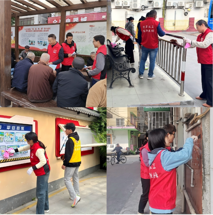 到达社区后,在社区干部的带领下,党员志愿者兵分三路开展志愿服务活动。有的同志围绕礼乐市场及周边居民区宣传垃圾分类知识,并发放宣传指引。有的同志拿起铲子走街串巷为商户周边围墙、居民楼楼道清理“牛皮癣”。有的同志拎着水桶,带着抹布,细心将报刊亭及公交车站的座椅围栏擦洗一新。